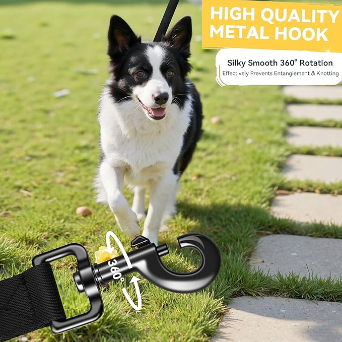 Su material es robusto y flexible, ideal para perros pequeños, medianos y grandes. El color negro aporta elegancia y sobriedad, mientras que el mosquetón metálico garantiza firmeza en cada situación, desde el campo hasta la playa.