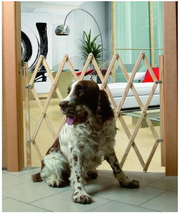 Esta barrera extensible está hecha de madera natural, diseñada para marcar límites con suavidad: perfecta para impedir el acceso a ciertas habitaciones, proteger zonas delicadas o simplemente crear orden sin perder amor.